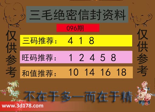 福彩3d第096期三毛绝密信封资料图详解:三码推荐:148