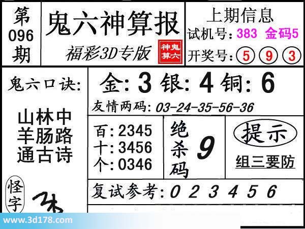 3d第17096期鬼六神算报为您推荐鬼六口诀: