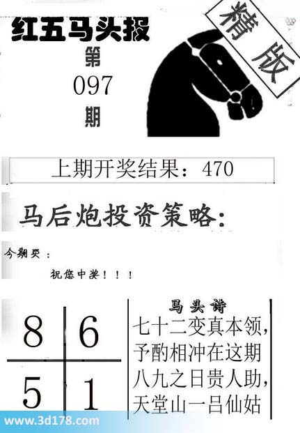 3d第2017097期红五马头报本期马头诗详解: