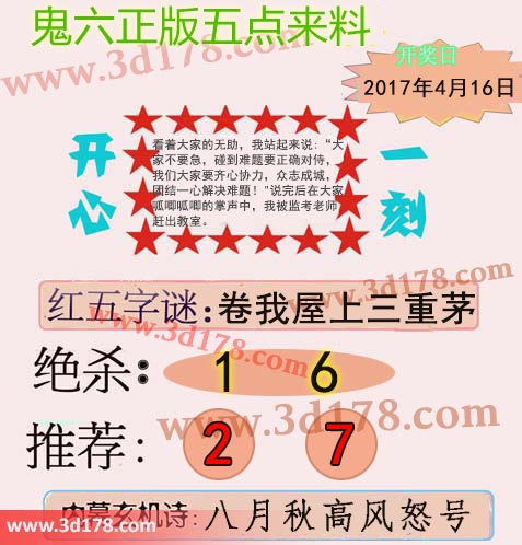 福彩3d第2017099期鬼六五点来料: