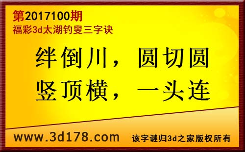 3d第17100期太湖字谜:绊倒川,圆切圆,竖顶横,一头连
