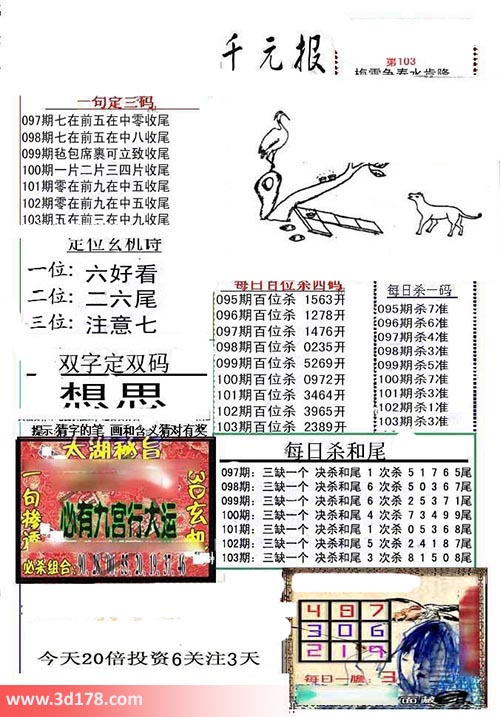 福彩3d第2017103期布衣千元报图详情分析如下: