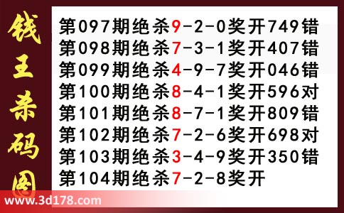 该钱王杀码图由3d之家3d图库频道原创,仅供彩民参考,温馨提供。