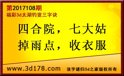 3d第17108期太湖字谜:四合院,七大姑,掉雨点,收衣服