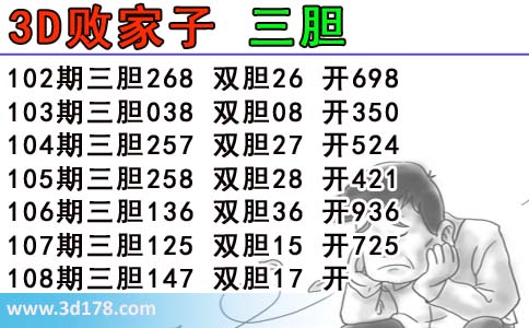 胆码图库3d第2017108期败家子三胆图: