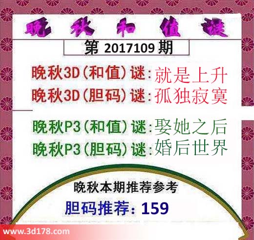 晚秋3D(和值)谜:就是上升