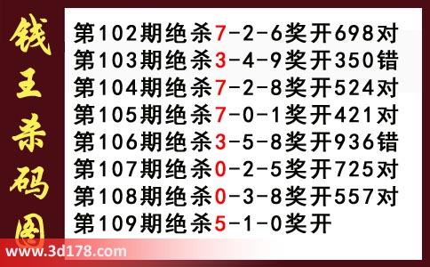 近期3d钱王杀码具体详情: