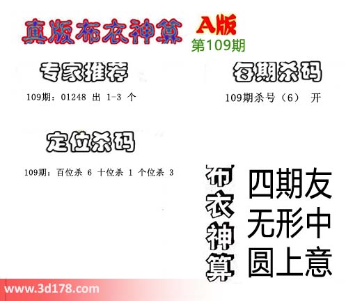 3d布衣神算第109期定位杀码:
