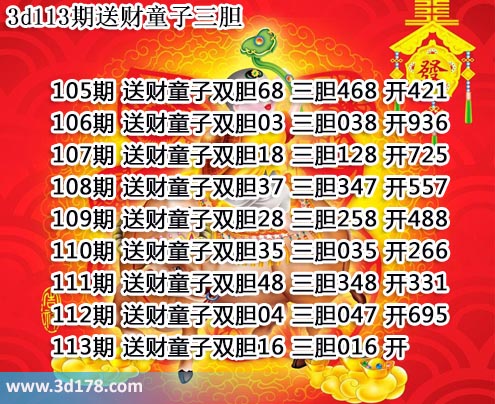 胆码图库3d第2017113期送财童子图: