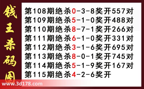 近期3d钱王杀码具体详情: