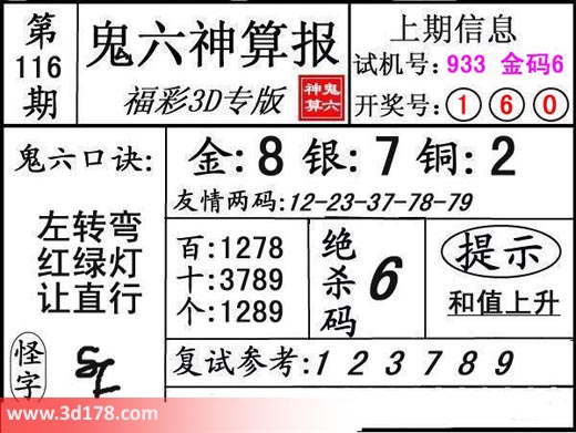 3d第17116期鬼六神算报为您推荐鬼六口诀: