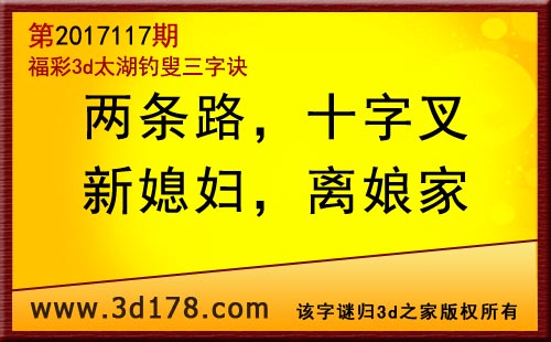 3d第17117期太湖字谜:两条路,十字叉,新媳妇,离娘家