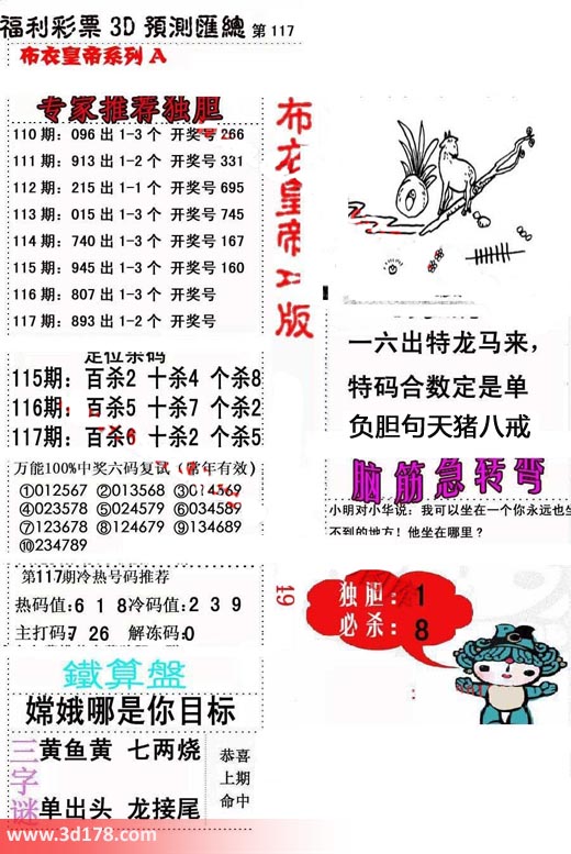 3d之家布衣皇帝第112期详解:117期:893 出1-2个 开奖号