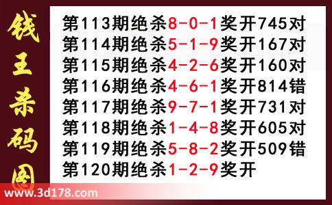 近期3d钱王杀码具体详情:
