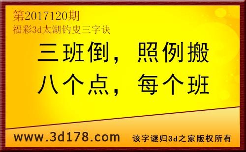 3d第17120期太湖字谜:三班倒,照例搬,八个点,每个班