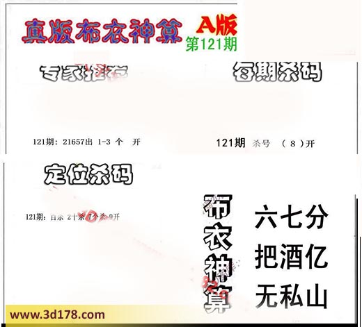 3d布衣神算第121期定位杀码:3d之家布衣图库之布衣神算图第2017121详解:121期:12567 出 1-3 个121期:百位杀 2 十位杀 7 个位杀 9121期杀号(8)开布衣神算:六七分,把酒亿,无私山该布衣图库由3d之家3d图库频道原创,仅供彩民参考,温馨提供。