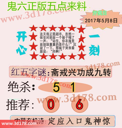 3d鬼六五点来料详解第2017121期:字谜:斋戒兴功成九转