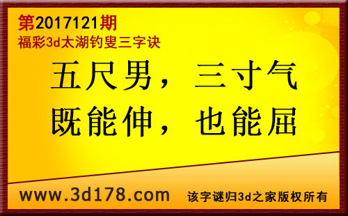 3d第17121期太湖字谜:五尺男,三寸气,既能伸,也能屈