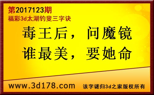3d第17123期太湖字谜:毒王后,问魔镜,谁最美,要她命