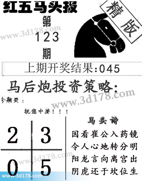 3d第2017123期红五马头报本期马头诗详解: