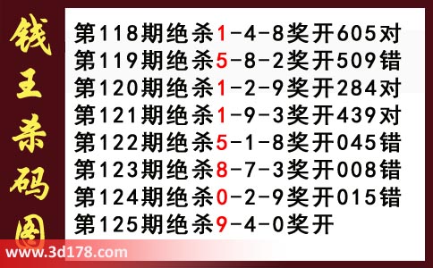 近期3d钱王杀码具体详情: