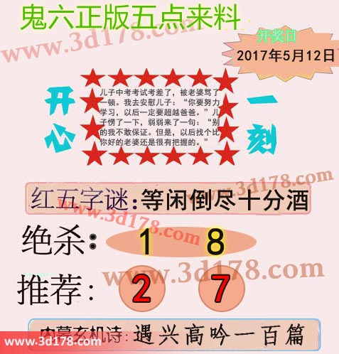 福彩3d第2017125期鬼六五点来料: