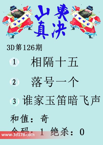 福彩3d第17126期山东真诀图如下所示:3d第2017126期山东真诀图金码推荐:1、相隔十五2、落号一个3、谁家玉笛暗飞声和值:奇金码:1 绝杀:0该丹东图库由3d之家3d图库频道原创,仅供彩民参考,温馨提供。