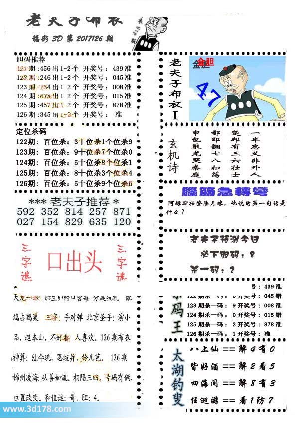 福彩3d第2017126期老夫子布衣图详情: