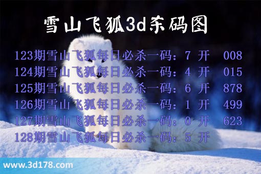 第2017128期福彩3d雪山飞狐杀号分析:第128期雪山飞狐杀码图必杀一码:123期雪山飞狐每日必杀一码:7 开 008124期雪山飞狐每日必杀一码:4 开 015125期雪山飞狐每日必杀一码:6 开 878126期雪山飞狐每日必杀一码:1 开 499127期雪山飞狐每日必杀一码:0 开 623128期雪山飞狐每日必杀一码:5 开该雪山飞狐杀码图由3d之家3d图库频道原创,仅供彩民参考,温馨提供。
