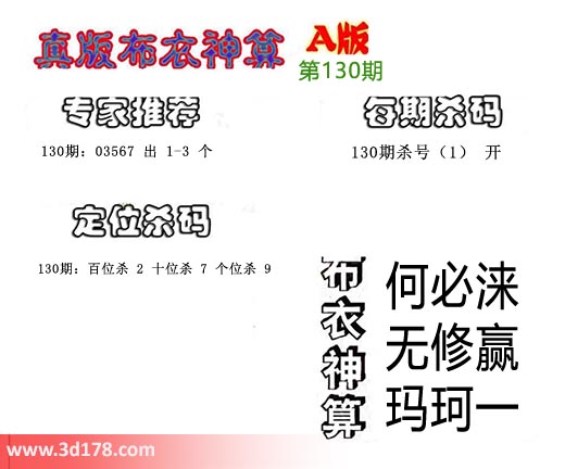 3d之家布衣图库之布衣神算图第2017130详解: