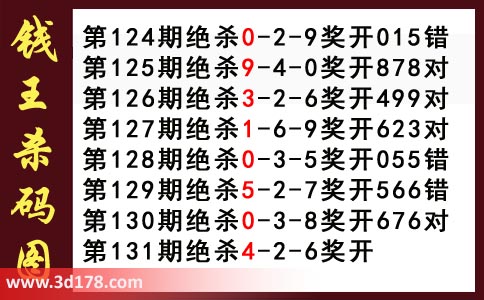 该钱王杀码图由3d之家3d图库频道原创,仅供彩民参考,温馨提供。