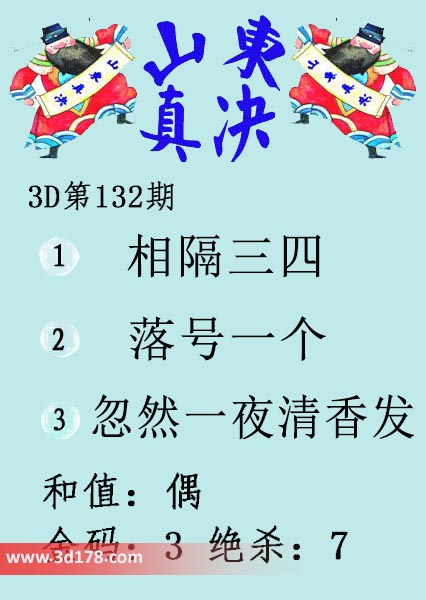 福彩3d第17132期山东真诀图如下所示: