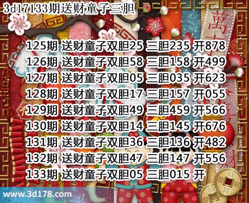 下面我们一起来回顾一下3d之家胆码图送财童子三胆近期推荐详情:
