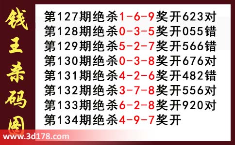 近期3d钱王杀码具体详情: