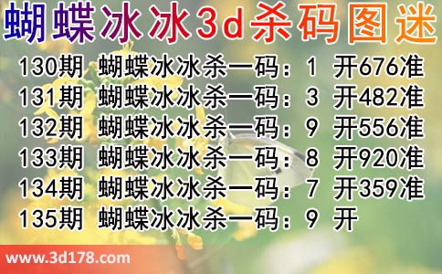 第2017135期3d蝴蝶冰冰杀码图杀号推荐分析: