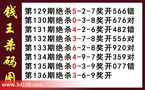 近期3d钱王杀码具体详情: