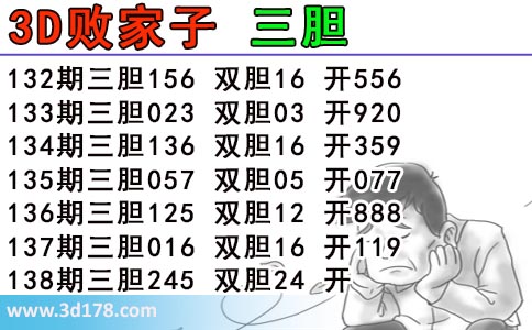 胆码图库3d第2017138期败家子三胆图: