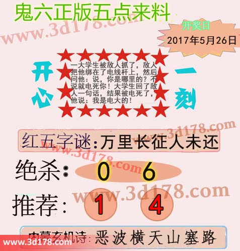 福彩3d第2017139期鬼六五点来料: