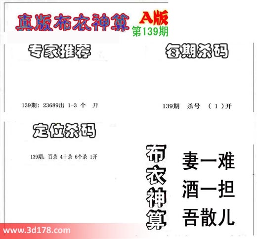 3d布衣神算第139期定位杀码:
