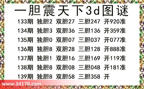 一胆震天下三胆图库由3d之家3d图库频道原创,仅供彩民参考,温馨提供。
