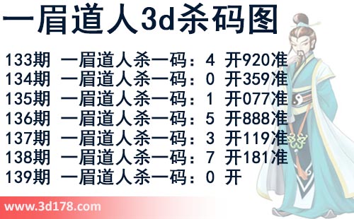 该一眉道人3d杀码图由3d之家3d图库频道原创,仅供彩民参考,温馨提供。