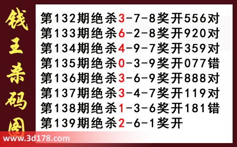 近期3d钱王杀码具体详情: