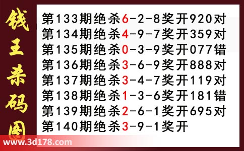 近期3d钱王杀码具体详情: