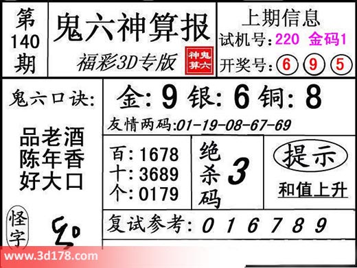 3d第17140期鬼六神算报为您推荐鬼六口诀: