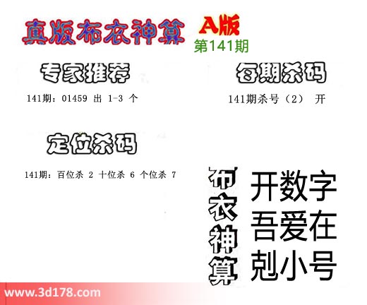 3d之家布衣图库之布衣神算图第2017141详解: