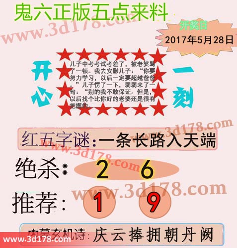 福彩3d第2017141期鬼六五点来料: