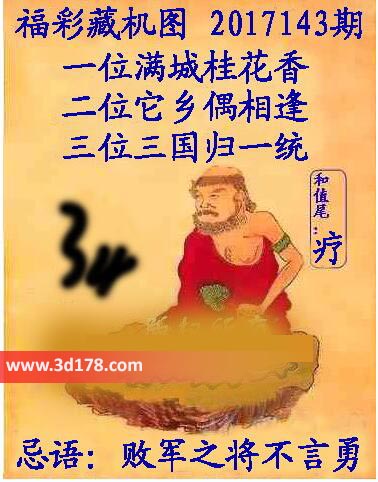 福彩3d第2017143期正版藏机图详解:3d之家3d藏机图第17143期本期为您详细解答:一位满城桂花香二位它乡偶相逢三位三国归一统和尾:疗忌语:败军之将不言勇3d正版藏机图由3d之家3d图库频道原创,仅供彩民参考,温馨提供。