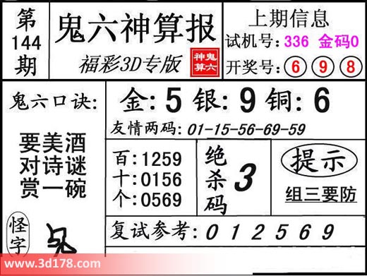 3d第17144期鬼六神算报为您推荐鬼六口诀: