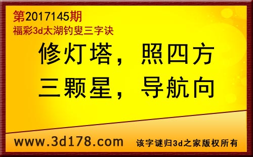 3d第17145期太湖字谜:修灯塔,照四方,三颗星,导航向