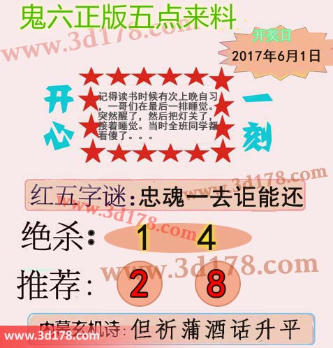 3d鬼六五点来料详解第2017145期:字谜:忠魂一去讵能还